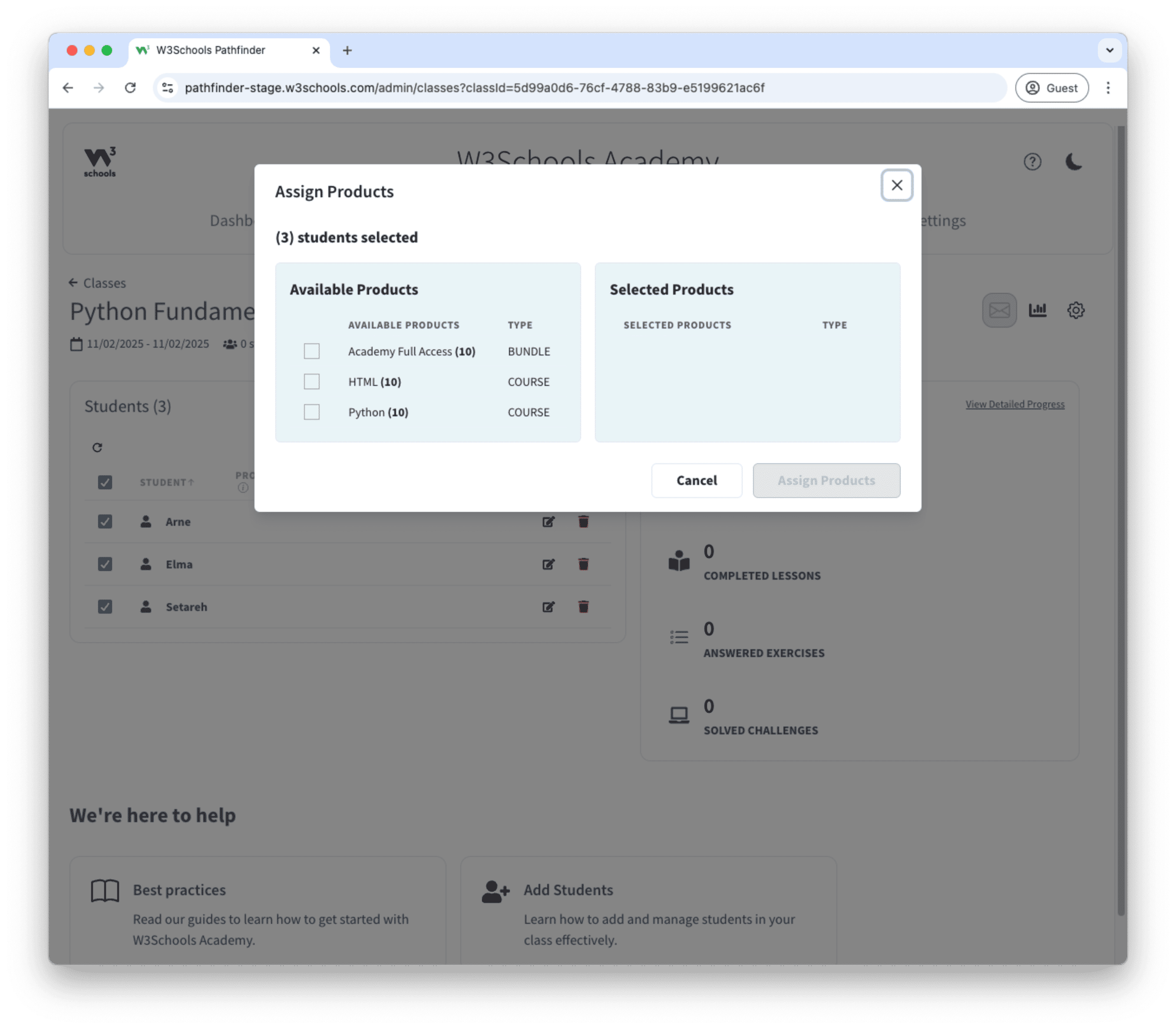 Note: Invitations to students are first sent when licenses are assigned to them.