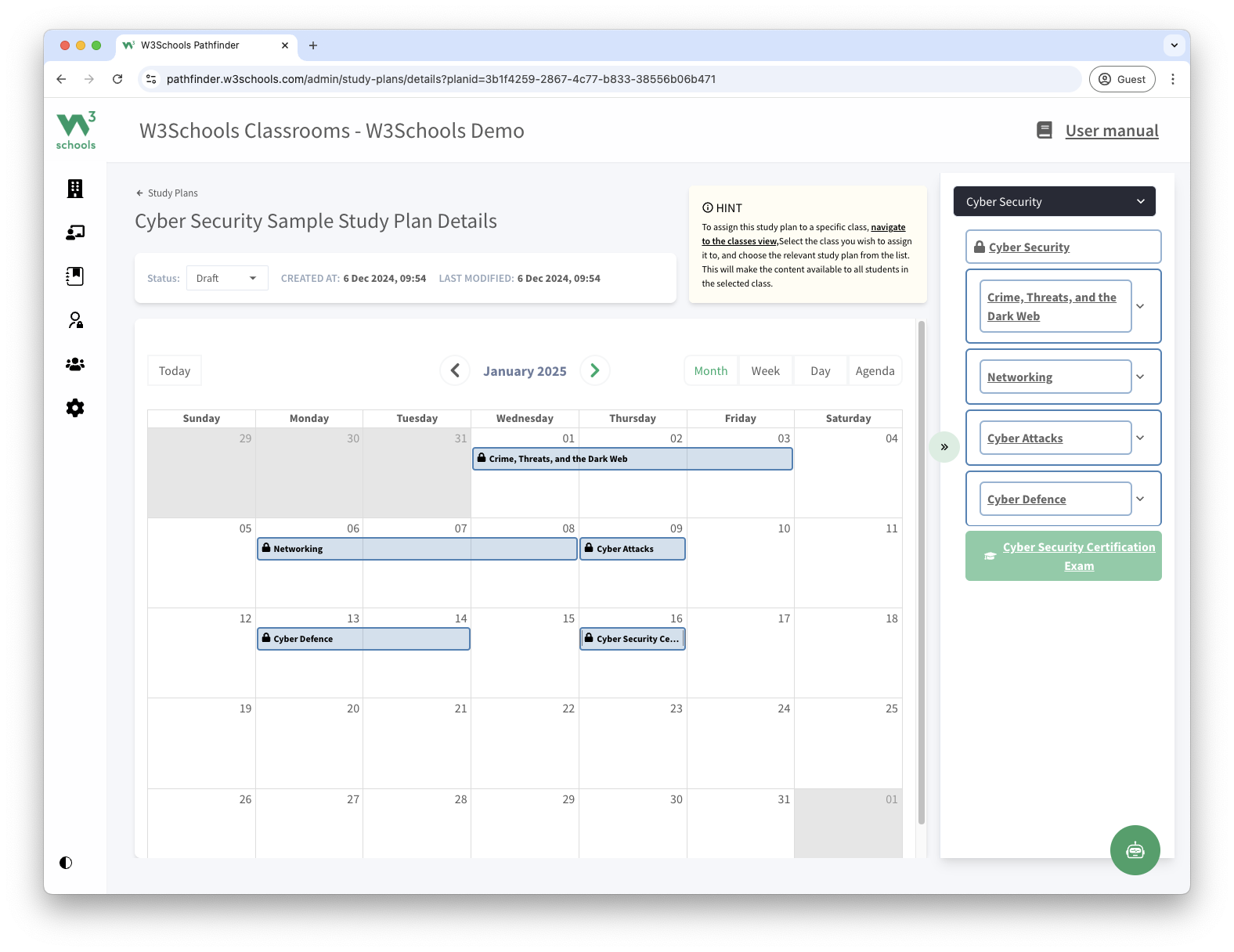 This study plan is a feature of W3Schools Academy.