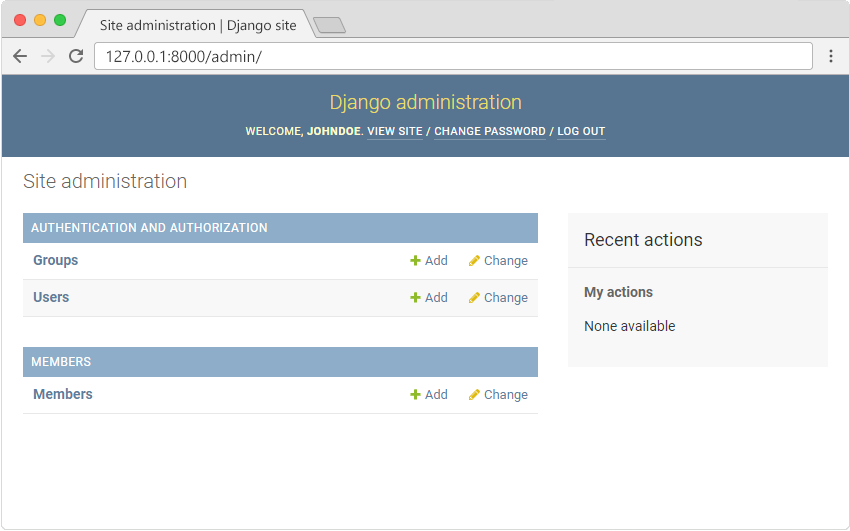 The old SQLite database contained 5 members, so let us dive into the admin interface and add the same 5 members.