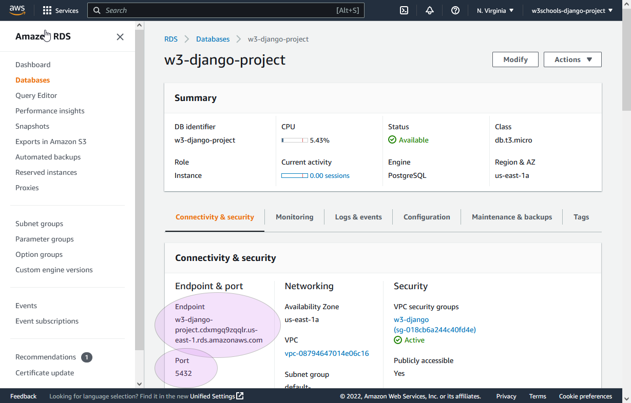 'HOST': 'w3-django-project.cdxmgq9zqqlr.us-east-1.rds.amazonaws.com',
