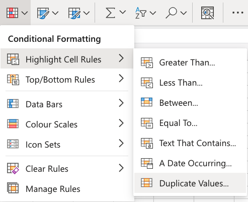 3. Select Duplicate Values... from the menu