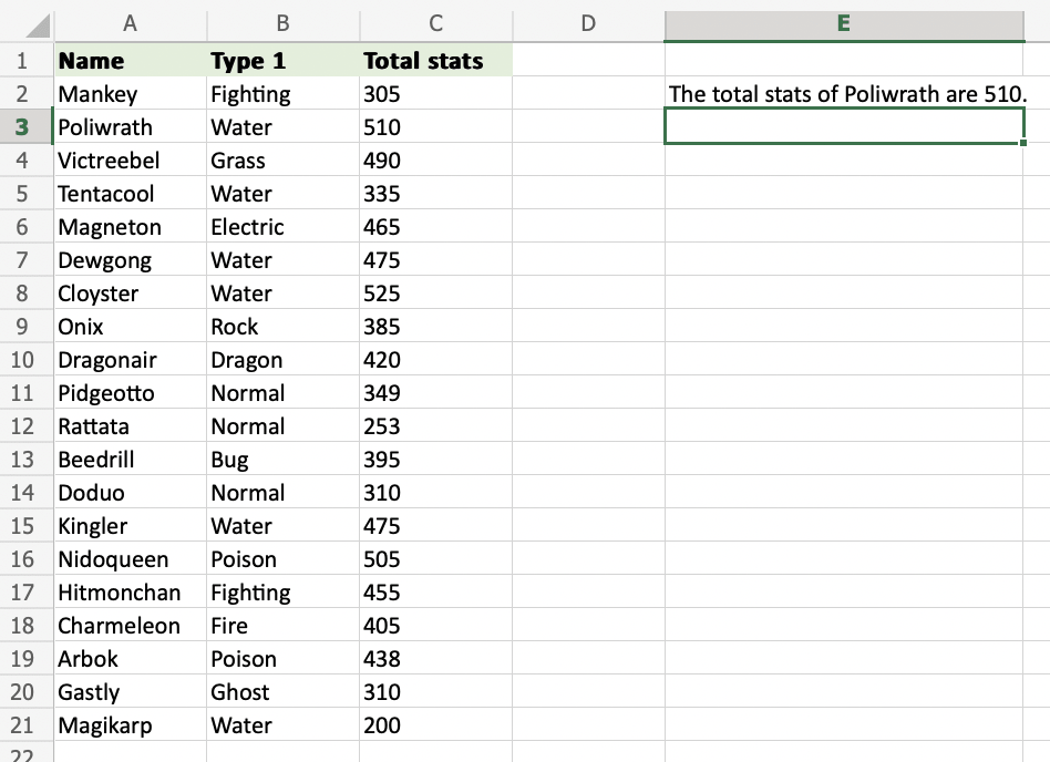 Note: The CONCAT function does not provide any delimiters between cell values used