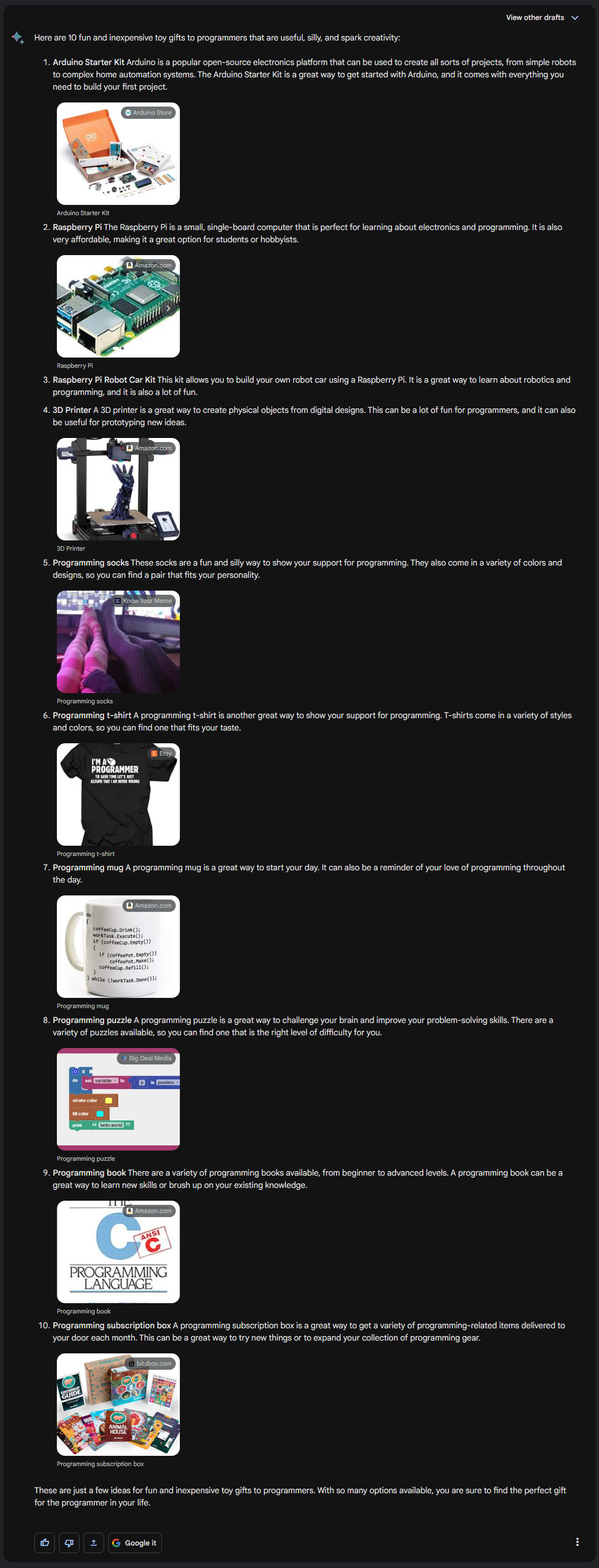 Create a list of 10 fun and inexpensive toy gifts to programmers based on the following criteria:
