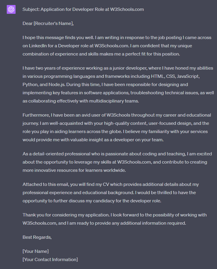 Now, you can continue to refine this draft and make it your own. But ChatGPT gave us a good starting point.
