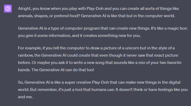 A response from a Generative AI (in this case, ChatGPT) could be: