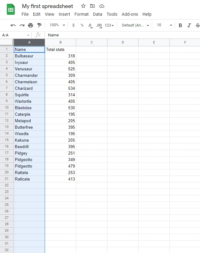 This example shows another way to sort Pokemon names in ascending order (from A to Z).