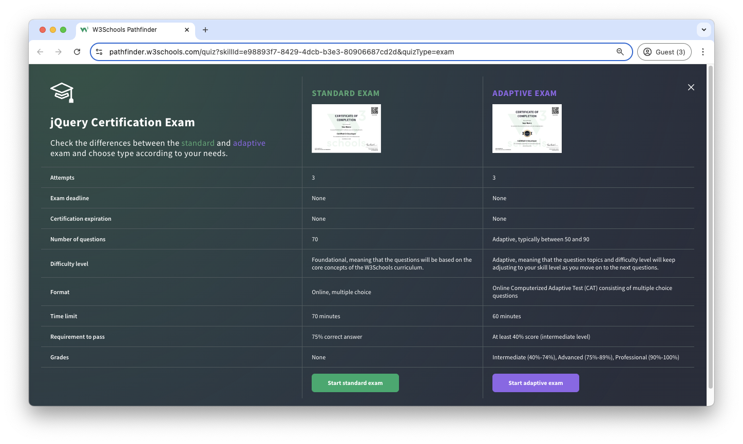 The jQuery exam is a test that summarizes the W3Schools jQuery syllabus.