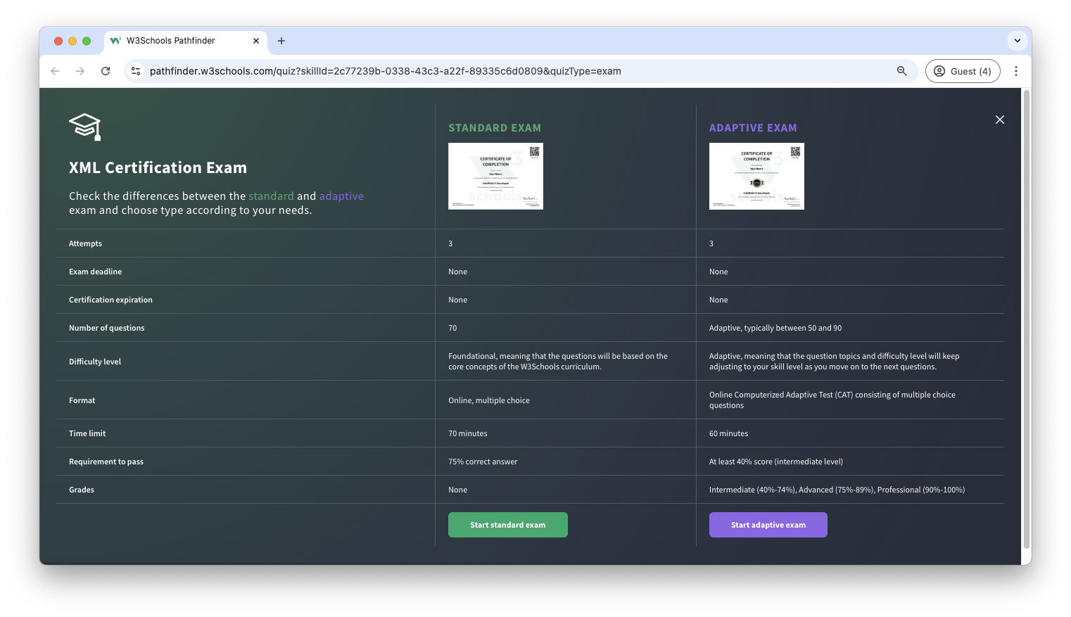 The XML exam is a test that summarizes the W3Schools XML syllabus.